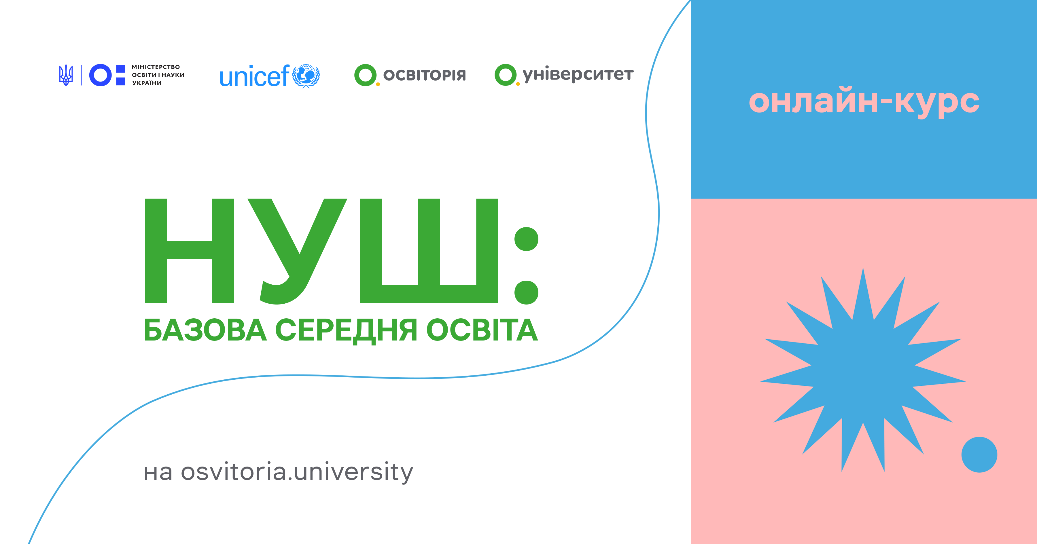 Громадська спілка «Освіторія» за підтримки МОН та ЮНІСЕФ розробила курс «НУШ: базова середня освіта» для підвищення кваліфікації вчителів середньої школи.